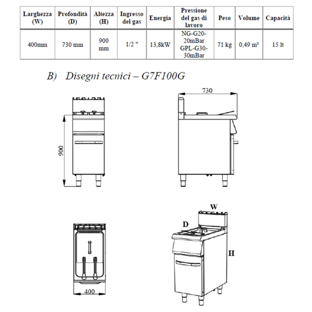 | Dimensioni esterne LxPxH mm: | 400x730x900h |